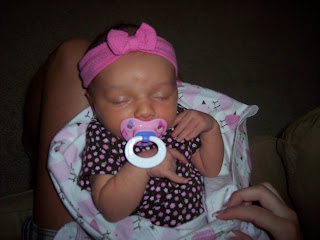 Baleigh had her second doctors appointment and she has already gained 9 ounces. She enjoys eating just like her dad.
